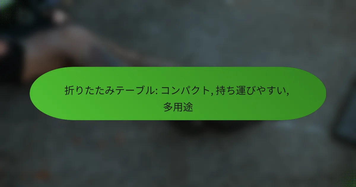 折りたたみテーブルは、コンパクトで持ち運びやすく、多用途に利用できる便利な家具です。家庭やアウトドアでの使用に適しており、必要に応じて簡単に収納できます。選ぶ際には、使用目的や耐久性を考慮することが重要です。