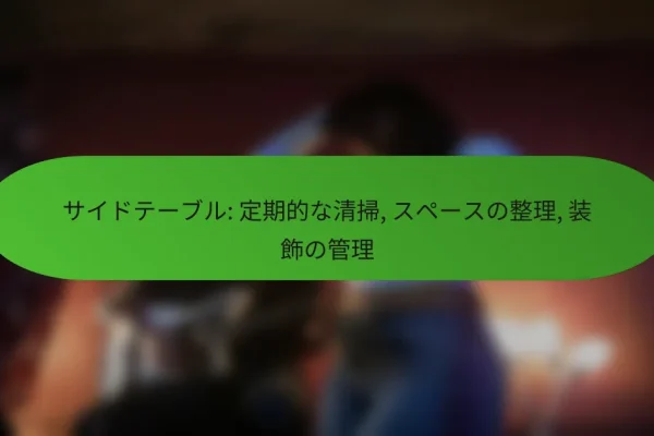 サイドテーブルは、居住空間において重要な役割を果たします。そのため、定期的な清掃やスペースの整理、装飾の管理が必要です。これにより、見た目や機能性を保ちながら、快適で美しい空間を実現できます。 サイドテーブルの定期的な清掃はなぜ重要か? サイドテーブルの定期的な清掃は、その寿命を延ばし、衛生的な環境を保つために不可欠です。清掃を怠ると、汚れやほこりが蓄積し、見た目や機能に悪影響を及ぼすことがあります。 清掃がサイドテーブルの寿命を延ばす理由 定期的な清掃は、サイドテーブルの素材を保護し、劣化を防ぎます。木製のテーブルでは、汚れや水分が浸透することで変色や腐敗が進むため、特に注意が必要です。 金属やガラス製のテーブルも、清掃を怠ると表面に傷や汚れが目立つようになります。適切な清掃を行うことで、長期間美しい状態を維持できます。 衛生面での利点 サイドテーブルは、飲食物や個人用品を置くことが多いため、衛生状態が非常に重要です。定期的に清掃することで、バイ菌やウイルスの繁殖を防ぎ、健康リスクを軽減します。 特に、食事をする場所に近いテーブルでは、食べかすや飲み物のこぼれが衛生問題を引き起こす可能性があります。清掃を習慣化することで、安心して使用できます。 美観を保つための清掃方法 サイドテーブルの美観を保つためには、適切な清掃方法が重要です。柔らかい布で表面を拭き、必要に応じて専用のクリーナーを使用します。 特に、木製テーブルには、木材用のオイルやワックスを定期的に塗布することで、艶を保ちつつ傷を防ぐことができます。 使用する清掃用品の選び方 清掃用品は、サイドテーブルの材質に応じて選ぶことが重要です。木製の場合は、化学薬品を含まない優しいクリーナーを選びましょう。 金属やガラス製のテーブルには、油分を含まないクリーナーが効果的です。使用する前に、目立たない部分でテストすることをお勧めします。 清掃頻度の推奨 サイドテーブルの清掃頻度は、使用状況によりますが、週に1回の清掃が理想です。特に飲食物を置く場合は、毎日の軽い拭き掃除が推奨されます。 また、季節ごとに徹底的な清掃を行うことで、より良い状態を保つことができます。定期的なメンテナンスが、長持ちする秘訣です。 サイドテーブルのスペース整理の方法は? サイドテーブルのスペース整理は、効率的な収納と美しい装飾を両立させるために重要です。定期的に整理整頓を行うことで、使いやすさが向上し、居住空間が快適になります。 整理整頓の基本的なステップ 整理整頓の第一歩は、サイドテーブルの上にあるアイテムをすべて取り除くことです。次に、必要なものと不要なものを分け、不要なものは処分または寄付します。最後に、必要なアイテムを使いやすい位置に配置します。 このプロセスを定期的に行うことで、サイドテーブルが常に整った状態を保つことができます。 スペースを有効活用するためのアイデア サイドテーブルのスペースを有効活用するためには、縦の空間を利用することが効果的です。例えば、棚やバスケットを使って、上部に小物を収納することができます。 また、引き出しやキャビネットがある場合は、内部を整理することで、見た目をすっきりさせることができます。 収納オプションの比較 サイドテーブルの収納オプションには、オープンシェルフ、引き出し、バスケットなどがあります。オープンシェルフは視覚的に魅力的ですが、ホコリがたまりやすいです。 引き出しは隠れた収納スペースを提供しますが、何が入っているか忘れがちです。バスケットは柔軟性があり、簡単に取り出せるため、実用的な選択肢です。 整理整頓に役立つツールとアクセサリー 整理整頓を助けるツールには、ラベル付きの収納ボックスやトレーがあります。これらはアイテムを分類し、見つけやすくするのに役立ちます。 また、デコレーション用の小物を使うことで、整理整頓された空間を美しく保つことができます。例えば、観葉植物やアート作品を取り入れると良いでしょう。 整理整頓の維持方法 整理整頓を維持するためには、定期的なチェックが必要です。週に一度、サイドテーブルの上を見直し、不要なものを取り除く習慣をつけましょう。 また、アイテムが増えた場合は、すぐに整理することで、散らかるのを防げます。整理整頓を楽しむことで、長続きさせることができます。 サイドテーブルの装飾を管理するには? サイドテーブルの装飾を管理することは、空間を美しく保ち、機能性を高めるために重要です。適切なアイテムの選択や配置を行うことで、居心地の良い雰囲気を作り出せます。 装飾アイテムの選び方 装飾アイテムを選ぶ際は、テーブルのサイズや周囲のインテリアに合ったものを選ぶことが大切です。小さなテーブルにはコンパクトなアイテム、大きなテーブルには存在感のあるアイテムが適しています。 また、色や素材のバ